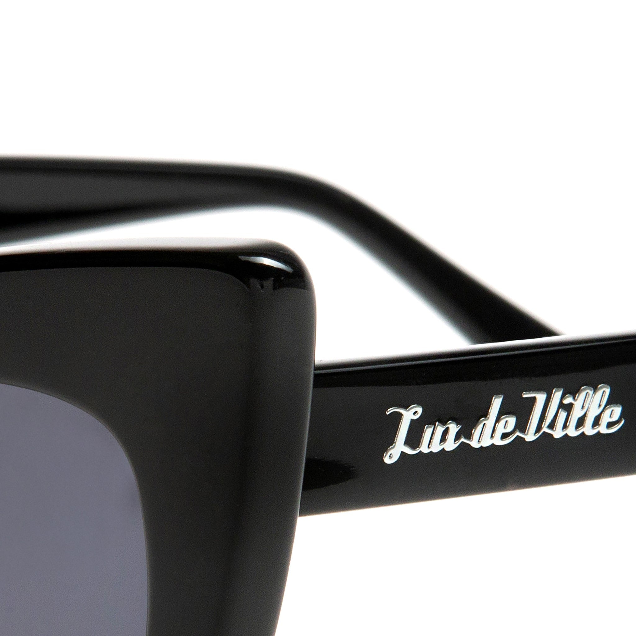 It's good to be Queen! These classic vintage frames are hand crafted from top notch acetate of course. Shown here in black and red rum sparkle these feature our chrome logo plate on the arms and have that perfectly comfortable fit. You're gonna look fabulous!!