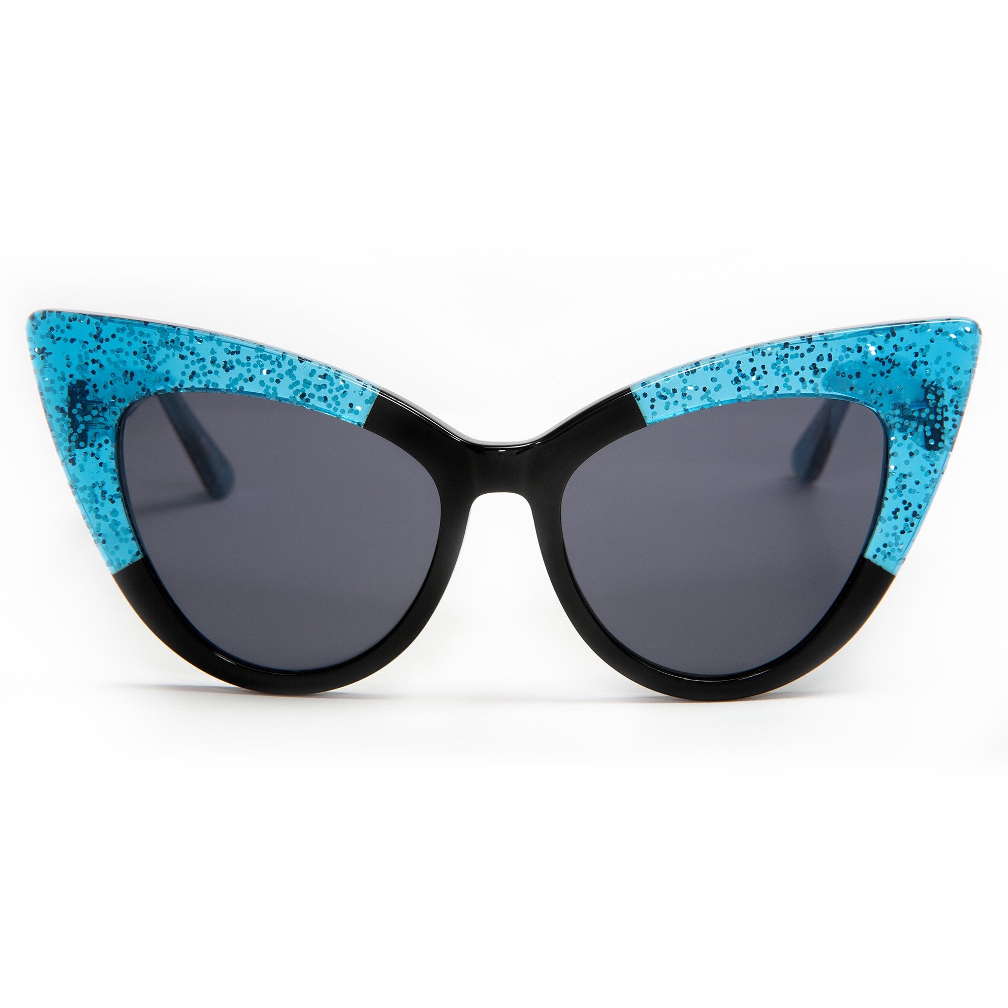 It's good to be Queen! These classic vintage frames are hand crafted from top notch acetate of course. Shown here in black and villain blue sparkle these feature our chrome logo plate on the arms and have that perfectly comfortable fit. You're gonna look fabulous!!