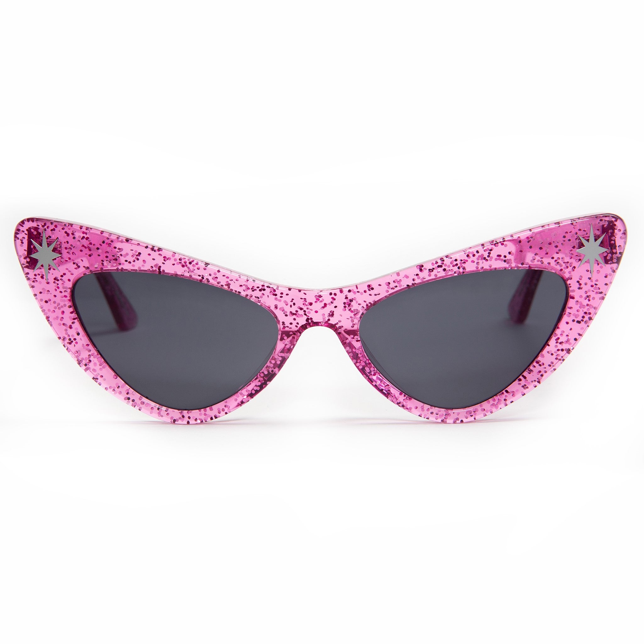 Our Starlite glasses are classic vintage reproduction frames adorned with our iconic starlite chrome hardware. Hand crafted top notch acetate frames with our chrome logo plate on the arms. Shown here in winkle pink sparkle these gorgeous frames are waiting for a midnight car cruise! You're gonna look fabulous!